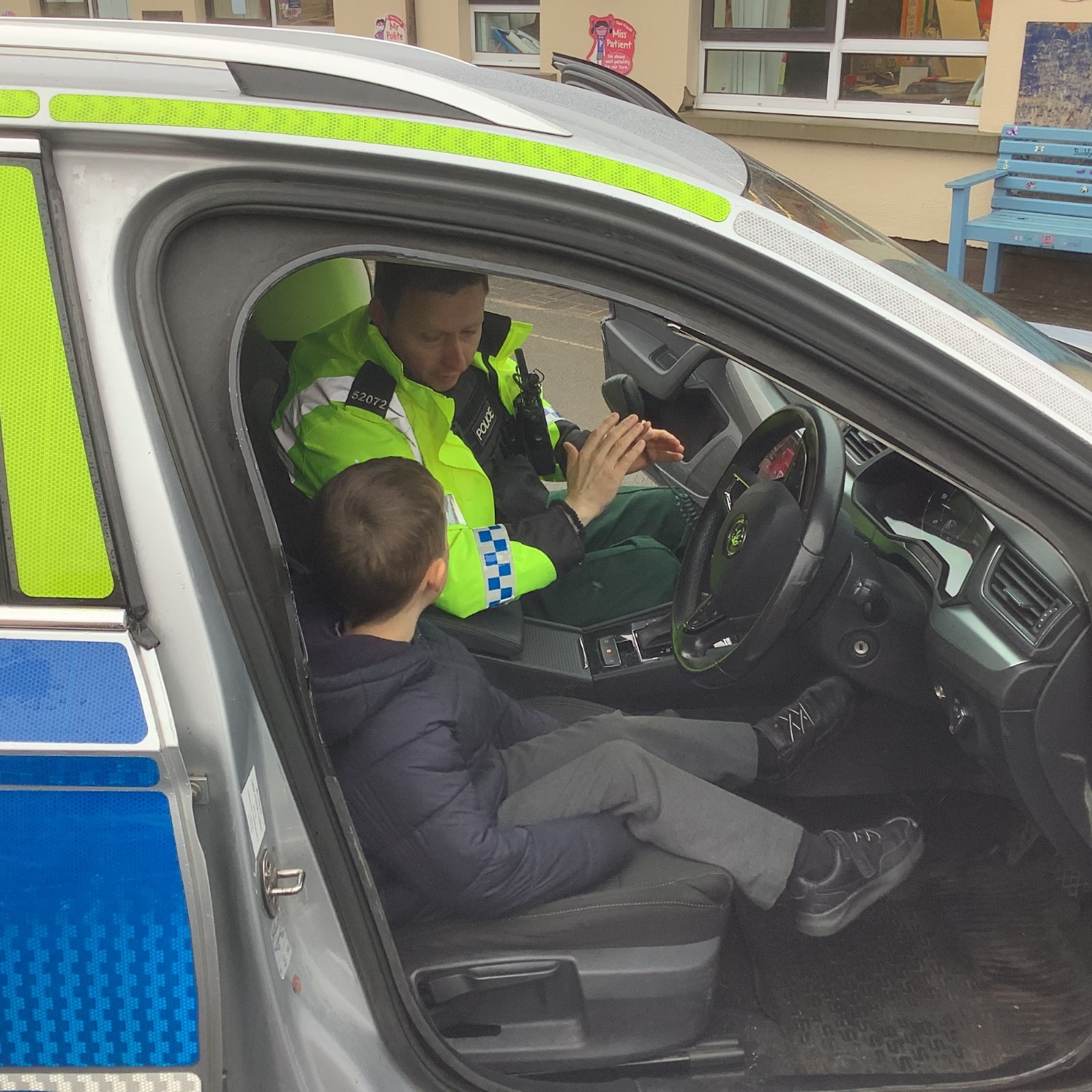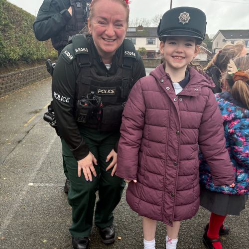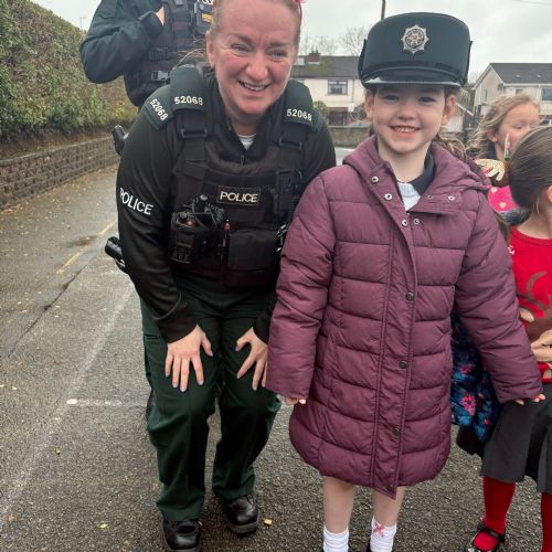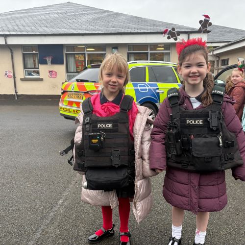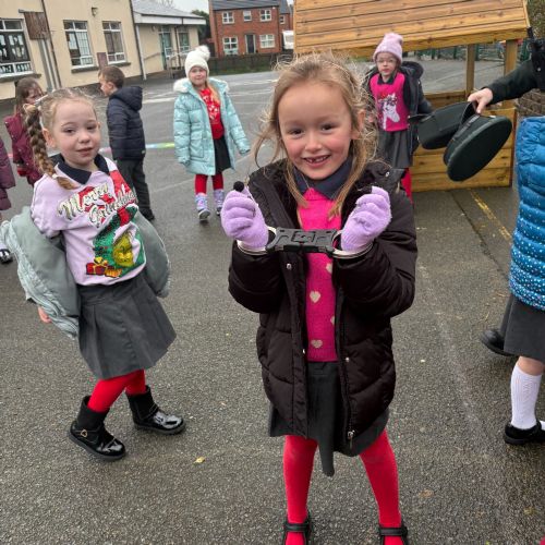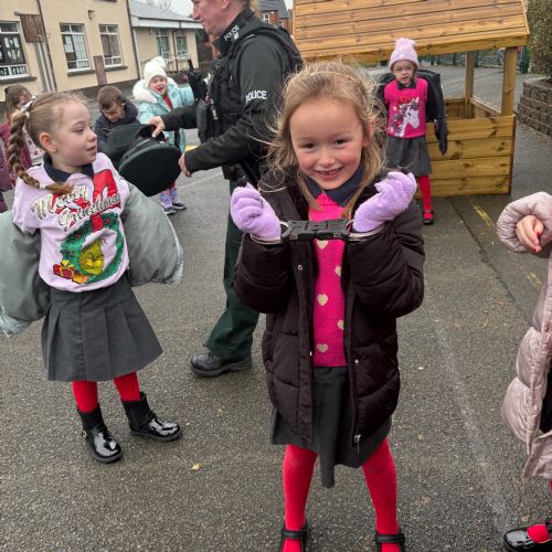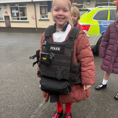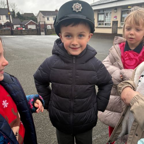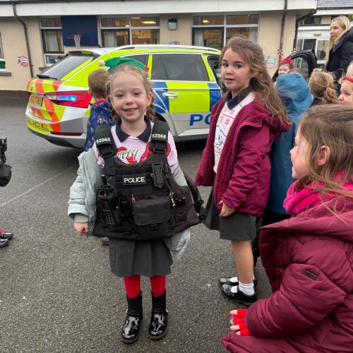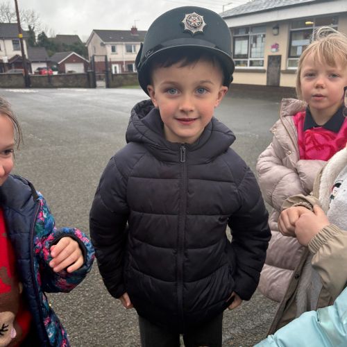 As part of our ‘People Who Help Us’ topic, we had a visit from the PSNI. We got to ask real-life police officers questions and get to sit in a police car.