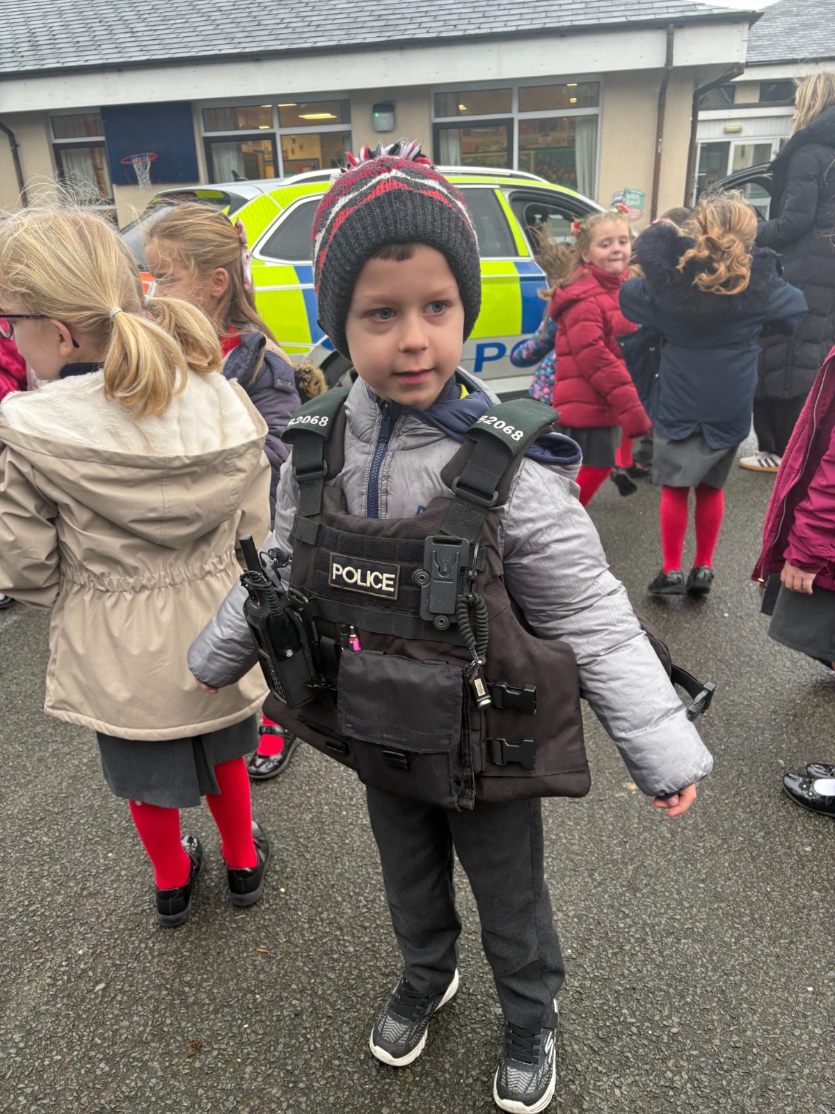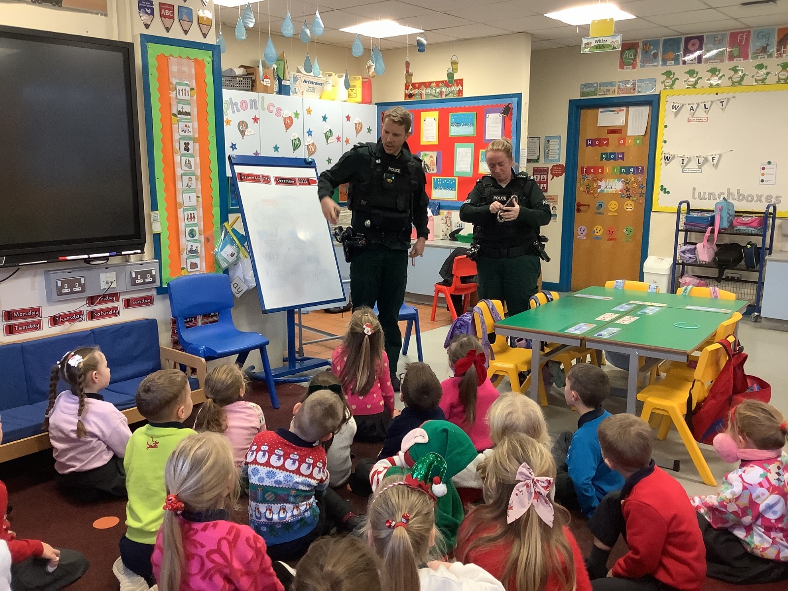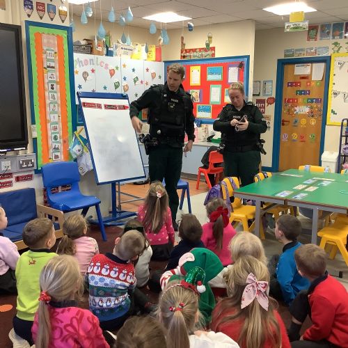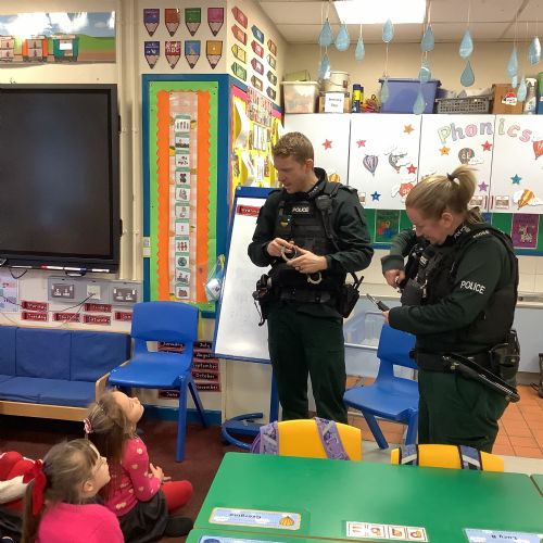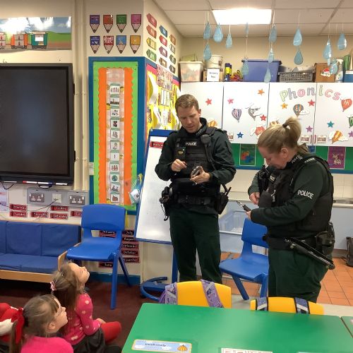 As part of our ‘People Who Help Us’ topic, we had a visit from the PSNI. We got to ask real-life police officers questions and get to sit in a police car.