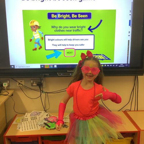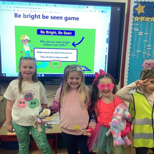 As part of our Sustrans initiative, we all dressed in our brightest clothes and had a great time celebrating Ditch the Dark day and learning about Road Safety - be safe be seen!