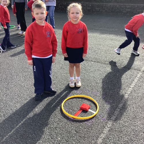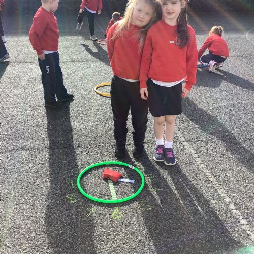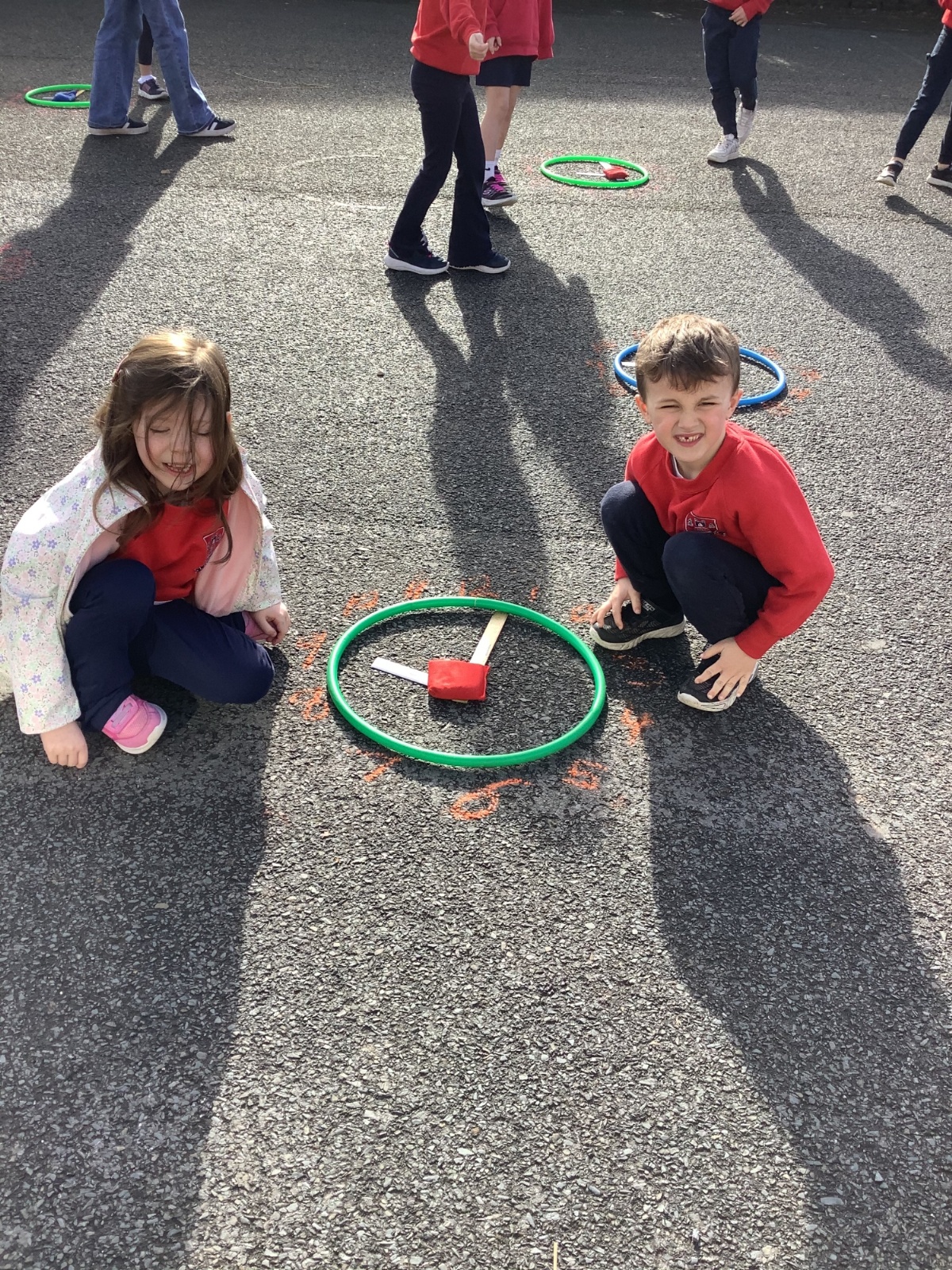 In P2, we have been learning to tell the time! We went outside to do a Time Scavenger Hunt to find the magic word & used hoops and rules to tell the time outside. We had great fun!