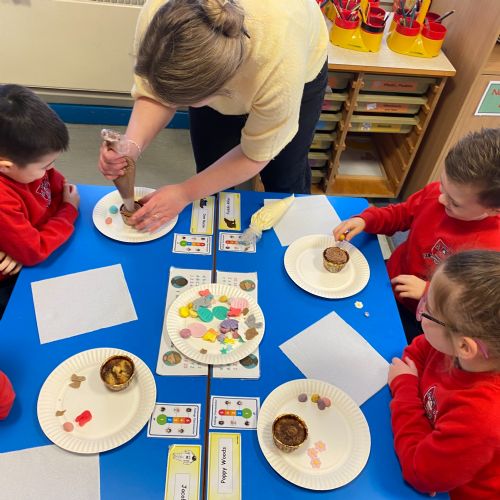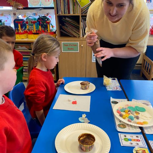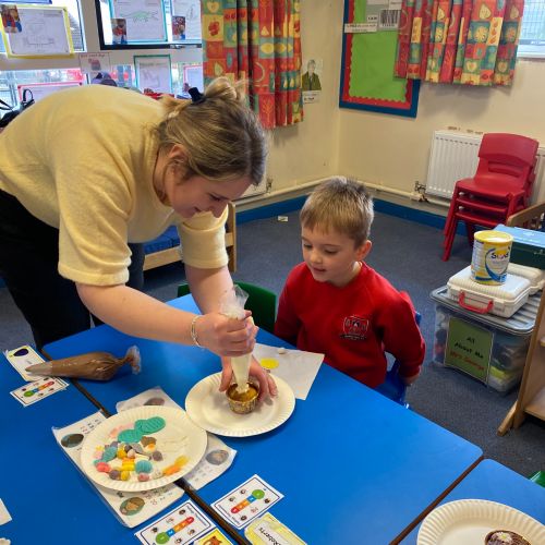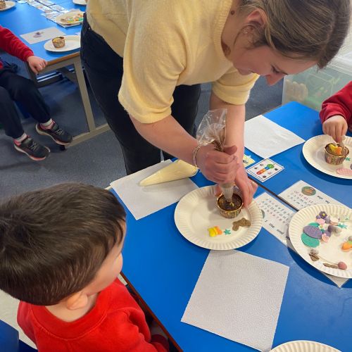 We had a wonderful visit from one of our mums, who shared her amazing cake‑decorating skills with us. The children loved learning how to decorate their own cupcakes and were so proud to take their creations home. A huge thank‑you, Margaret, for giving us such a fun, hands‑on learning experience!
